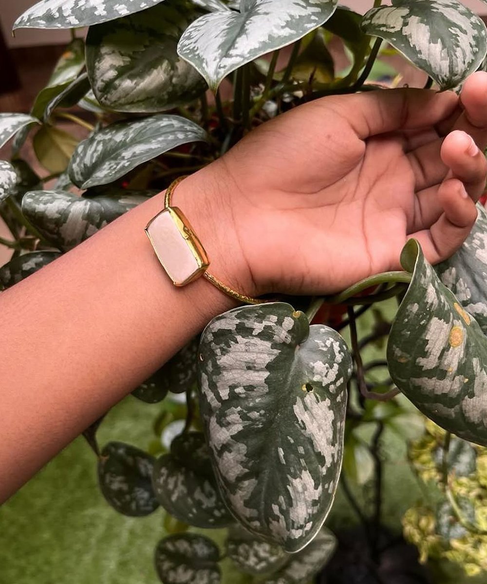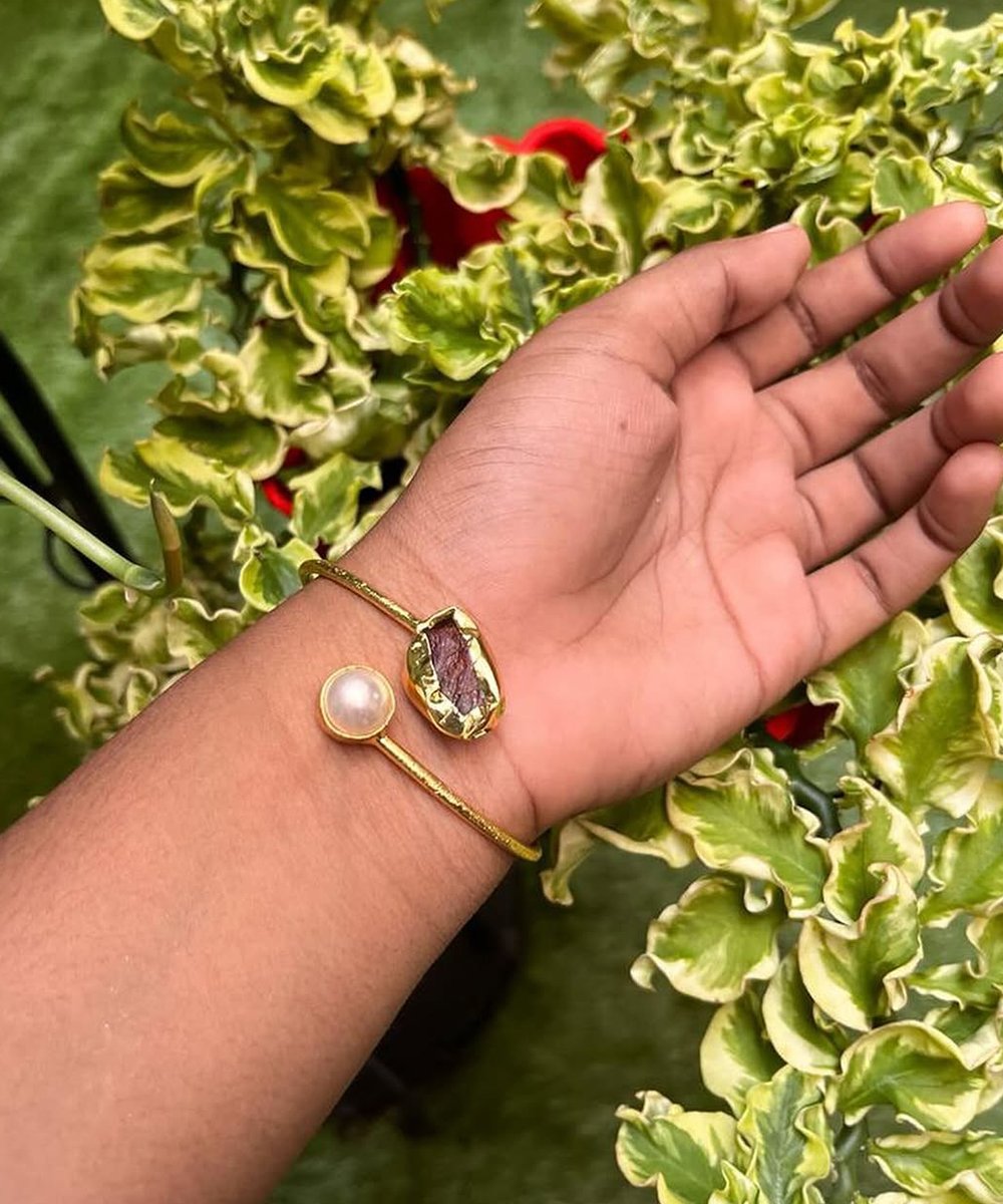Stylish Adjustable Brass Bangle featuring beautiful stone and pearl accents. A perfect blend of elegance and tradition for any occasion.